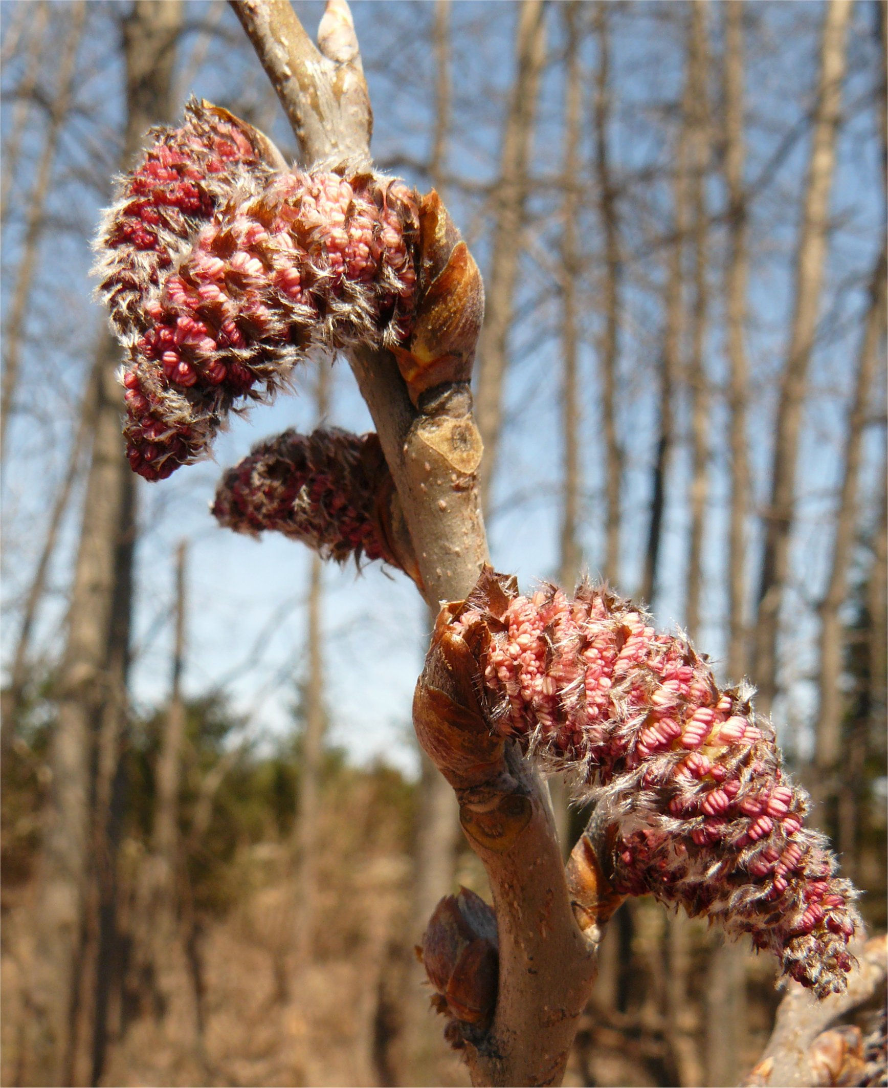 All members of the Salicaceae bloom in early spring, some before all the snow has melted.  Species are dioecious, meaning there are normally separate male and female trees.  Like the oak family, aspen flowers form in catkins.